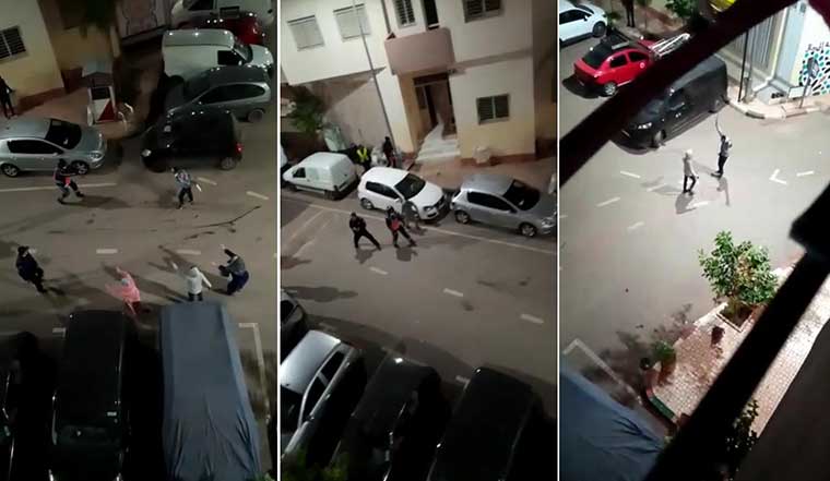 وقال بلاغ للمديرية العامة للأمن الوطني أن دوريات الشرطة وفرقة مكافحة العصابات كانت قد تدخلت بحي التشارك بمنطقة البرنوصي بالدار البيضاء لتوقيف المشتبه فيه الرئيسي الذي كان في حالة اندفاع قوية وهدد سلامة الأشخاص والممتلكات بواسطة السلاح الأبيض وقنينة غاز، كما ألحق خسائر مادية بمحلات تجارية بمشاركة الشخص الثاني المعروف بدوره بسوابقه القضائية.