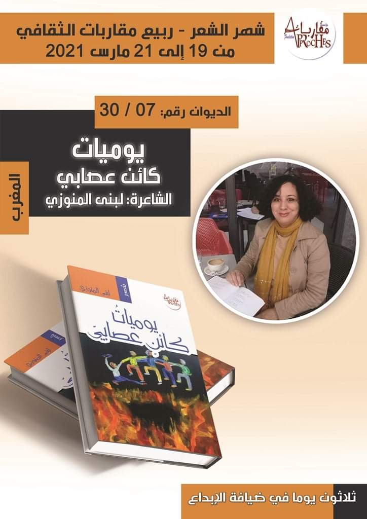 أطلقت مؤسسة مقاربات العنوان الابداعي السابع للشاعرة المغربية لبنى المنوزي بعنوان:” يوميات كائن عصابي”.وذلك تنفيذا لمقترحها الإبداعي بنشر 30 ديوانا في شهر واحد من 19 فبراير الى 21 مارس 2021 تحت شعار :” لأن الشعر يستحق”، ضمن برنامج ربيع المؤسسة الثقافي 2021