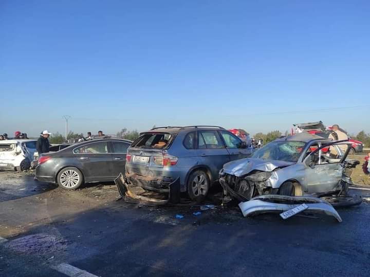 القنيطرة..تفاصيل مصرع سيدة وإصابة 37 شخصا جراء اصطدام 20 سيارة على مستوى جماعة سيدي الطيبي بالطريق السيار