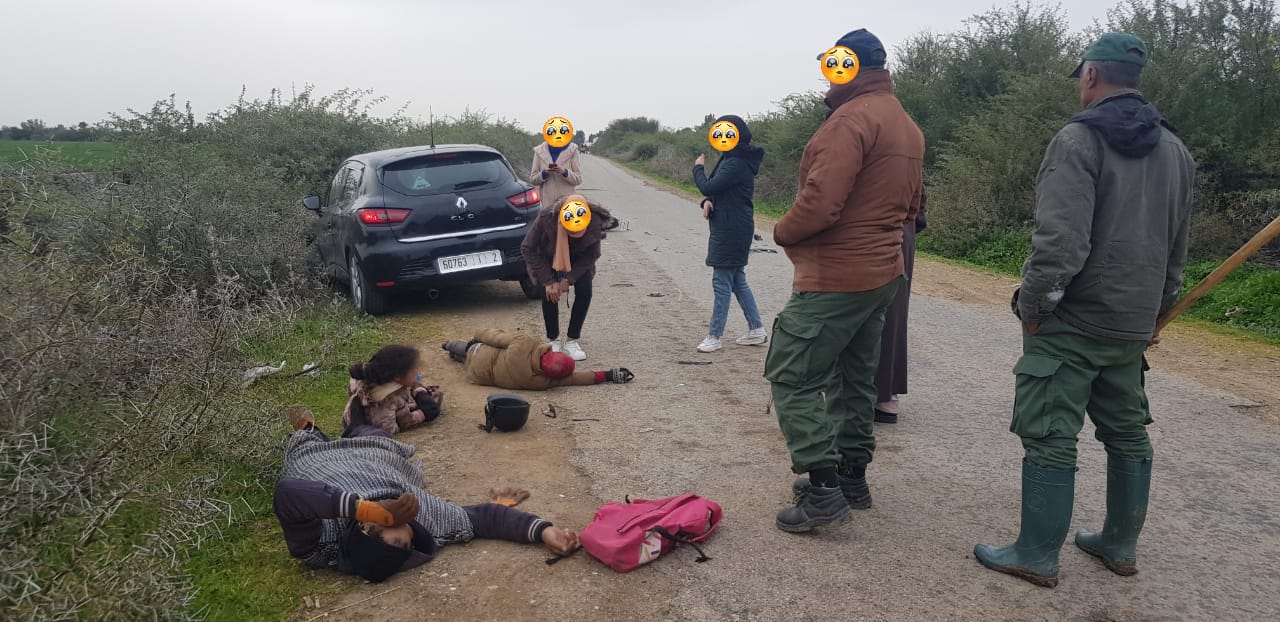 سيدي سليمان :حادثة سير اثر اصطدام دراجة نارية وسيارة خفيفة والمصابين أساتذة وتلميذتين بجماعة الصفافعة