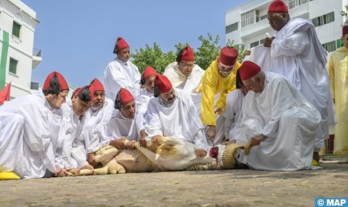 بعد ذلك، قام جلالة الملك بنحر أضحية العيد اقتداء بسنة جده المصطفى عليه أزكى الصلاة والسلام، فيما قام إمام المسجد بنحر الأضحية الثانية.