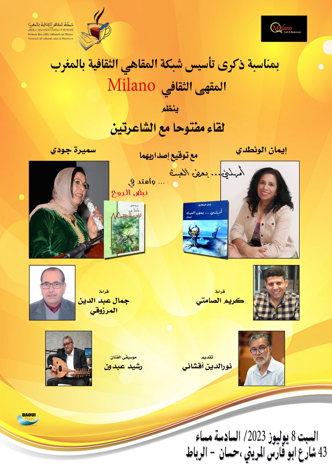 و ” …وأمتد في نبض الروح ” وذلك يوم السبت 8 يوليوز 2023 على الساعة السادسة مساء بمقهى milano