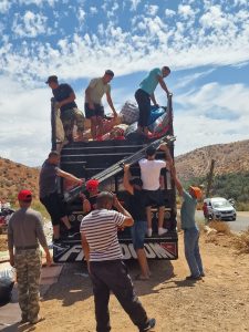 حيث وجدت القافلة صعوبة بالغة في الوصول الى هذه الدواوير بفعل صعوبة التضاريس ومخلفات الزلزال الذي ألحق أضرارا بليغة بالبنية التحتية للمنطقة. إذ وجد أعضاء القافلة سكان الدواوير في انتظارهم من أجل تسلم هذه المساعدات وتوزيعها على الأسر المتضررة.
