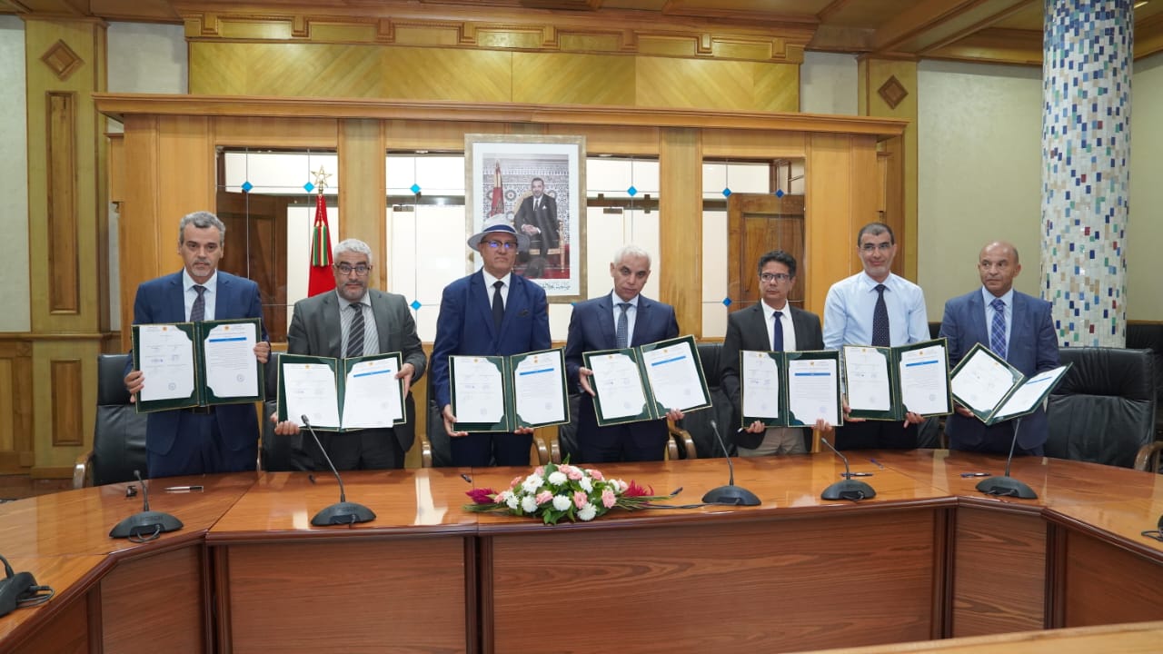 وقع وزير الصحة والحماية الاجتماعية خالد آيت طالب، بتفويض من رئيس الحكومة، يوم الثلاثاء 23 يوليوز 2024، محضر اتفاق بين وزارة الصحة والحماية الاجتماعية والنقابات الممثلة في قطاع الصحة، ويتعلق الأمر بالنقابة الوطنية للصحة المنضوية تحت لواء الكونفدرالية الديمقراطية للشغل؛ والنقابة الوطنية للصحة العمومية المنضوية تحت لواء الفيدرالية الديمقراطية للشغل؛ والنقابة المستقلة للممرضين؛ والجامعة الوطنية للصحة المنضوية تحت لواء الاتحاد العام للشغالين بالمغرب؛ والجامعة الوطنية لقطاع الصحة المنضوية تحت لواء الاتحاد الوطني للشغل؛ والمنظمة الديمقراطية للصحة المنضوية تحت لواء المنظمة الديمقراطية للشغل، وذلك بناءً على عرض الحكومة بخصوص الملف المطلبي الذي قدمه السيد وزير الصحة والحماية الاجتماعية للهيئات النقابية بتفويض من رئيس الحكومة بتاريخ 12 يوليو 2024.