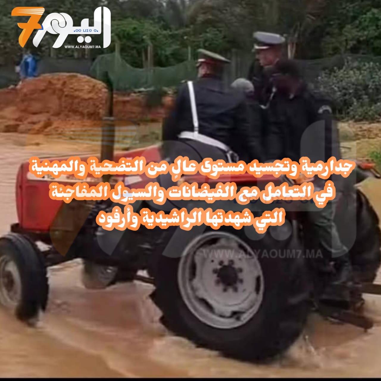 جدارمية وتجسيد مستوى عالٍ من التضحية والمهنية في التعامل مع الفيضانات والسيول المفاجئة التي شهدتها الراشيدية وأرفود