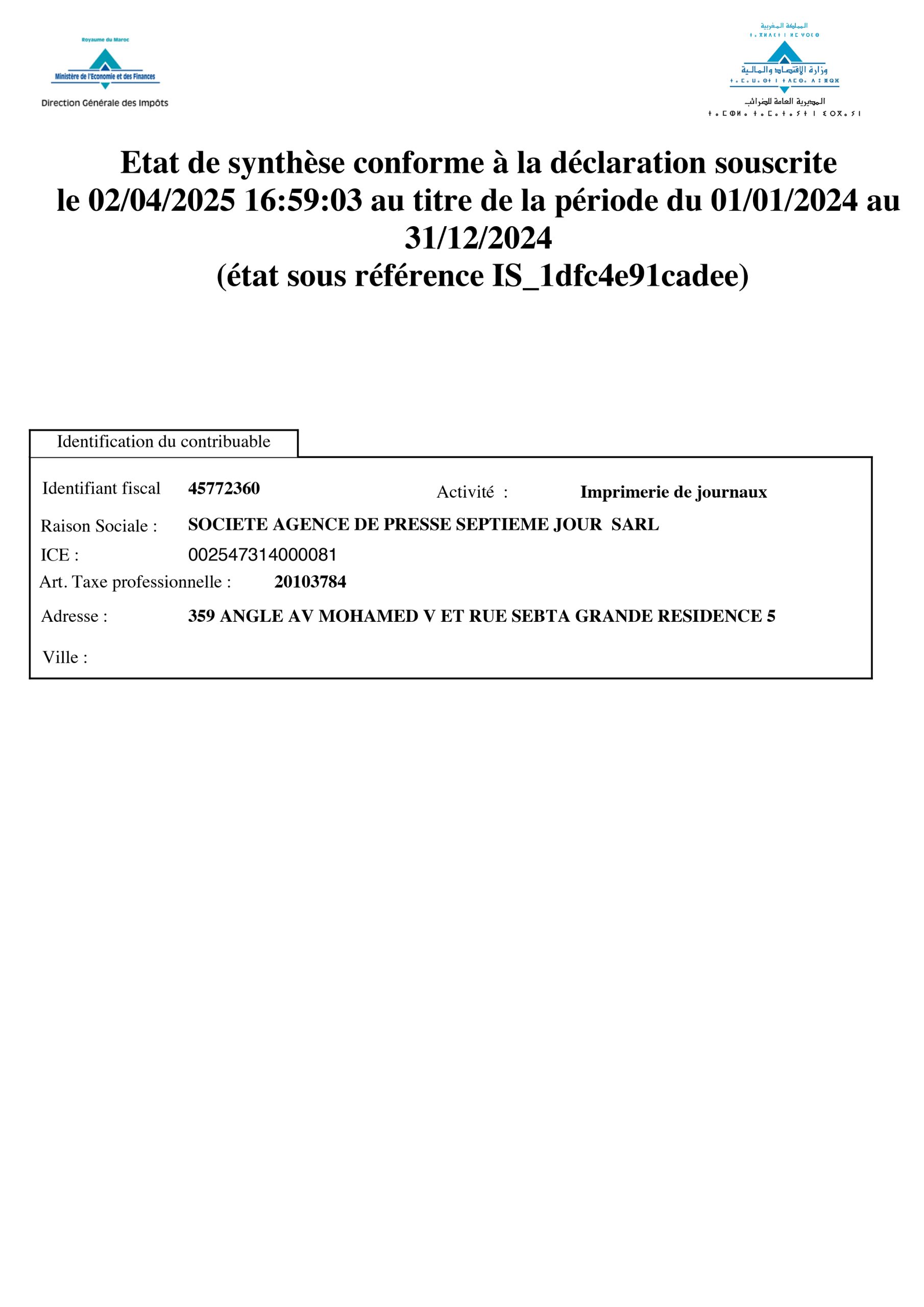 الجزء الأساسي من المصادقة الإلكترونية للبيان الإجمالي الختامي للقوائم التركيبية التحليليلة لسنة 2024 الخاص بشركة AGENCE DE PRESSE SEPTIEME JOUR نشر في 14 يونيو 2025 الساعة 23 و 01 دقيقة البيان الإجمالي الختامي للقوائم التركيبية التحليليلة لسنة 2024 شارك الجزء الأساسي من المصادقة الإلكترونية للبيان الإجمالي الختامي للقوائم التركيبية التحليليلة لسنة 2024 الخاص بشركةAGENCE DE PRESSE SEPTIEME JOUR AGENCE DE PRESSE SEPTIEME JOURالبيان الإجمالي الختامي للقوائم التركيبية التحليليلة لسنة 2024 شارك