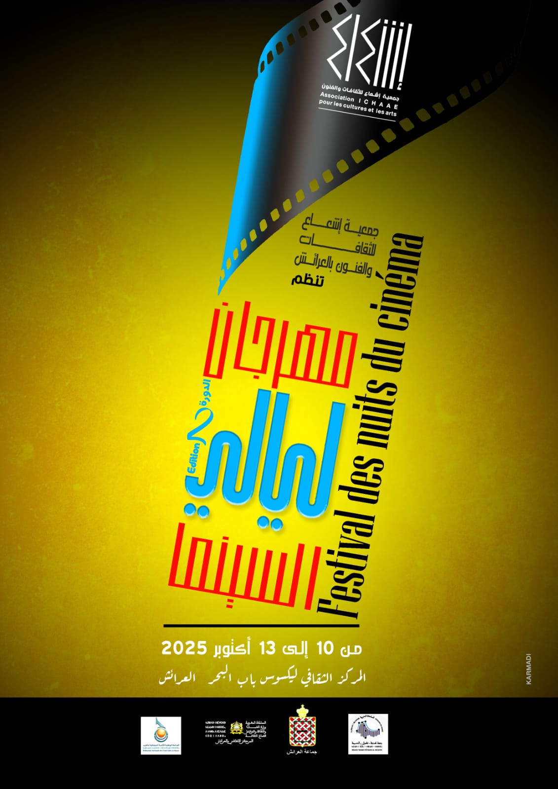 أعلنت جمعية إشعاع للثقافات والفنون بالعرائش عن برمجة فعاليات “الدورة الثانية لمهرجان ليالي السينما من 10إلى 13 أكتوبر 2025، “”بدعم من جهة طنجة تطوان الحسيمة وجماعة العرائش و المركز الثقافي ليكسوس وبتعاون مع الجامعة الوطنية للأندية السينمائية . وتتضمن هذه الدورة العروض السينمائية التالية :
