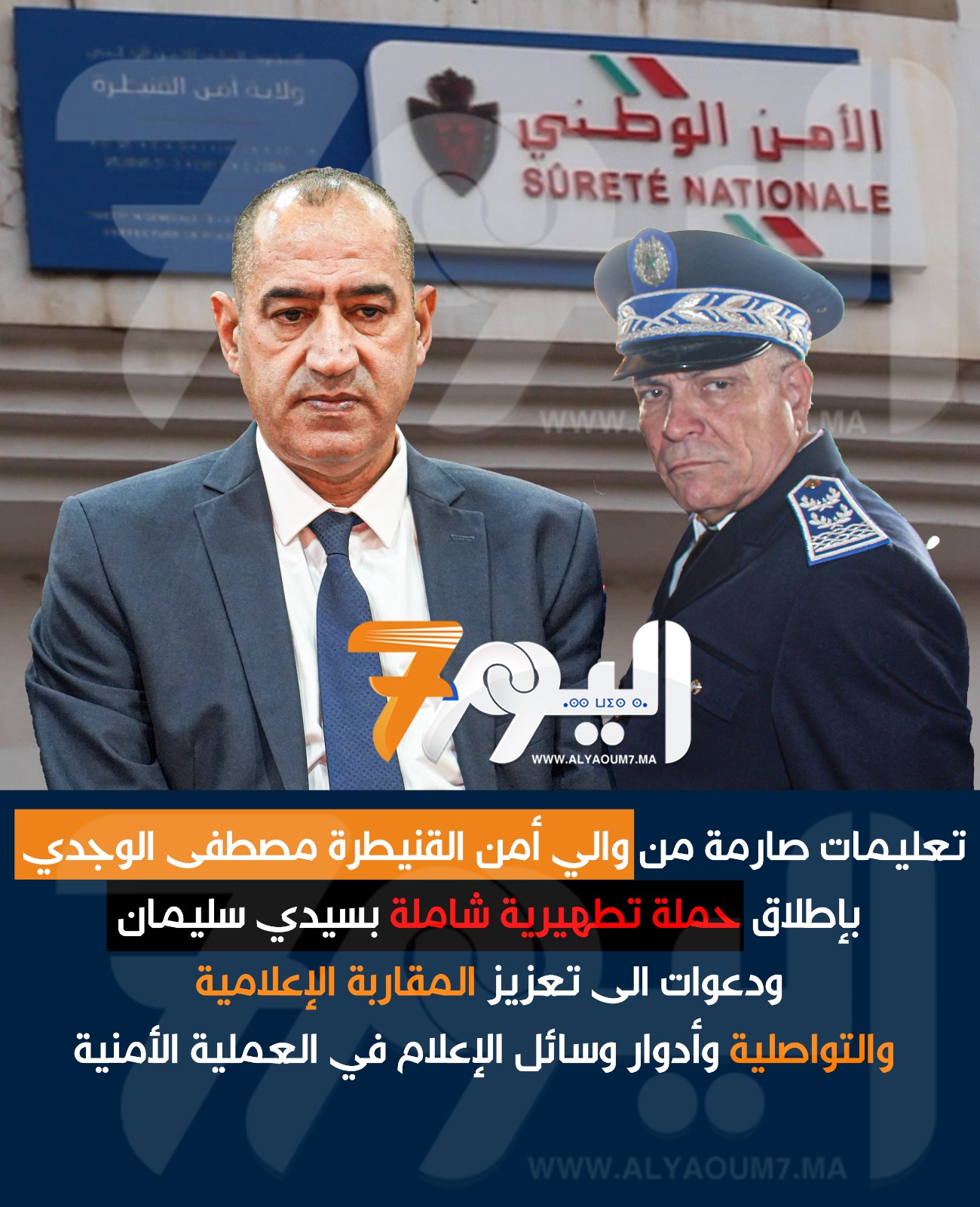 قادت السلطات الأمنية بسيدي سليمان  خلال اليومين الأخيرين بتعليمات حازمة  من مصطفى الوجدي، والي أمن القنيطرة ،وتتبع شخصي من رئيس منطقة أمن سيدي سليمان،تنزيل حملة تطهيرية شاملة للتصدي لمظاهر الجريمة ومحاربة عدد من الشوائب.