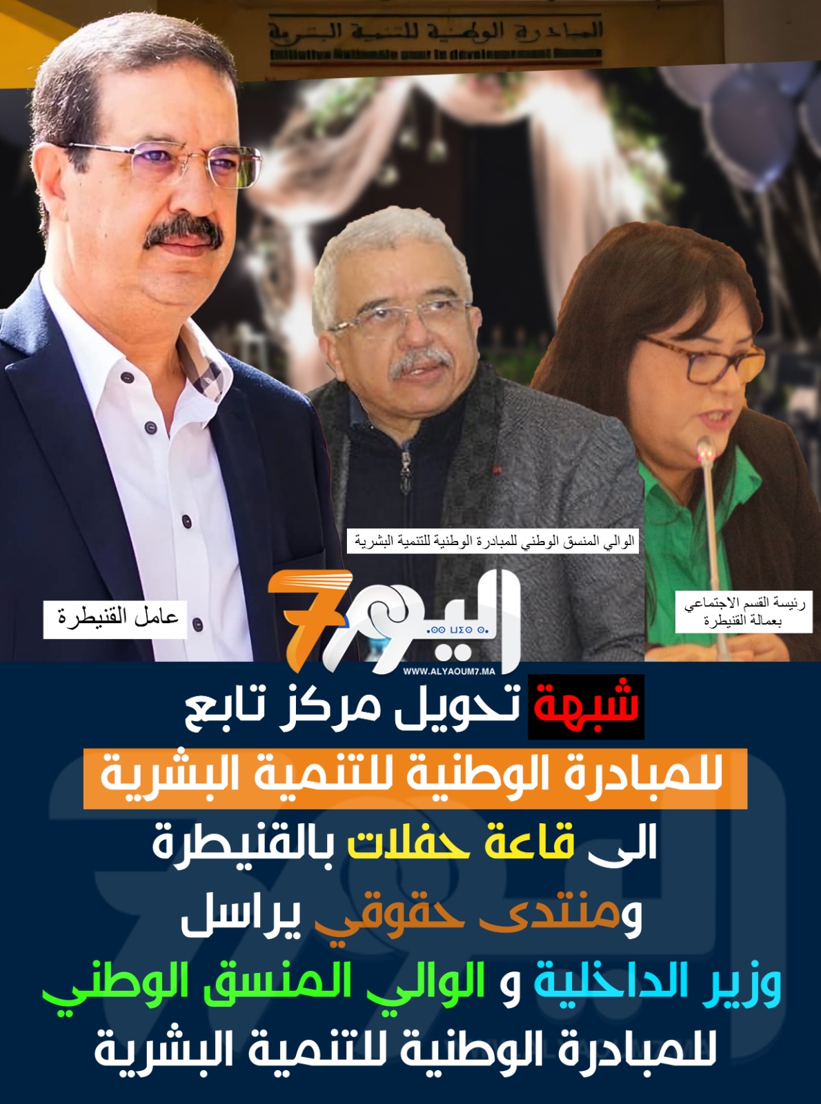 قضية بناصا بسيدي قاسم تتكرر بالقنيطرة ..منتدى حقوقي يطالب بفتح تحقيق حول ظروف وملابسات شبهة “تحويل “نادي تابع لـ المبادرة الوطنية للتنمية البشرية الى ” قاعة أفراح وحفلات”