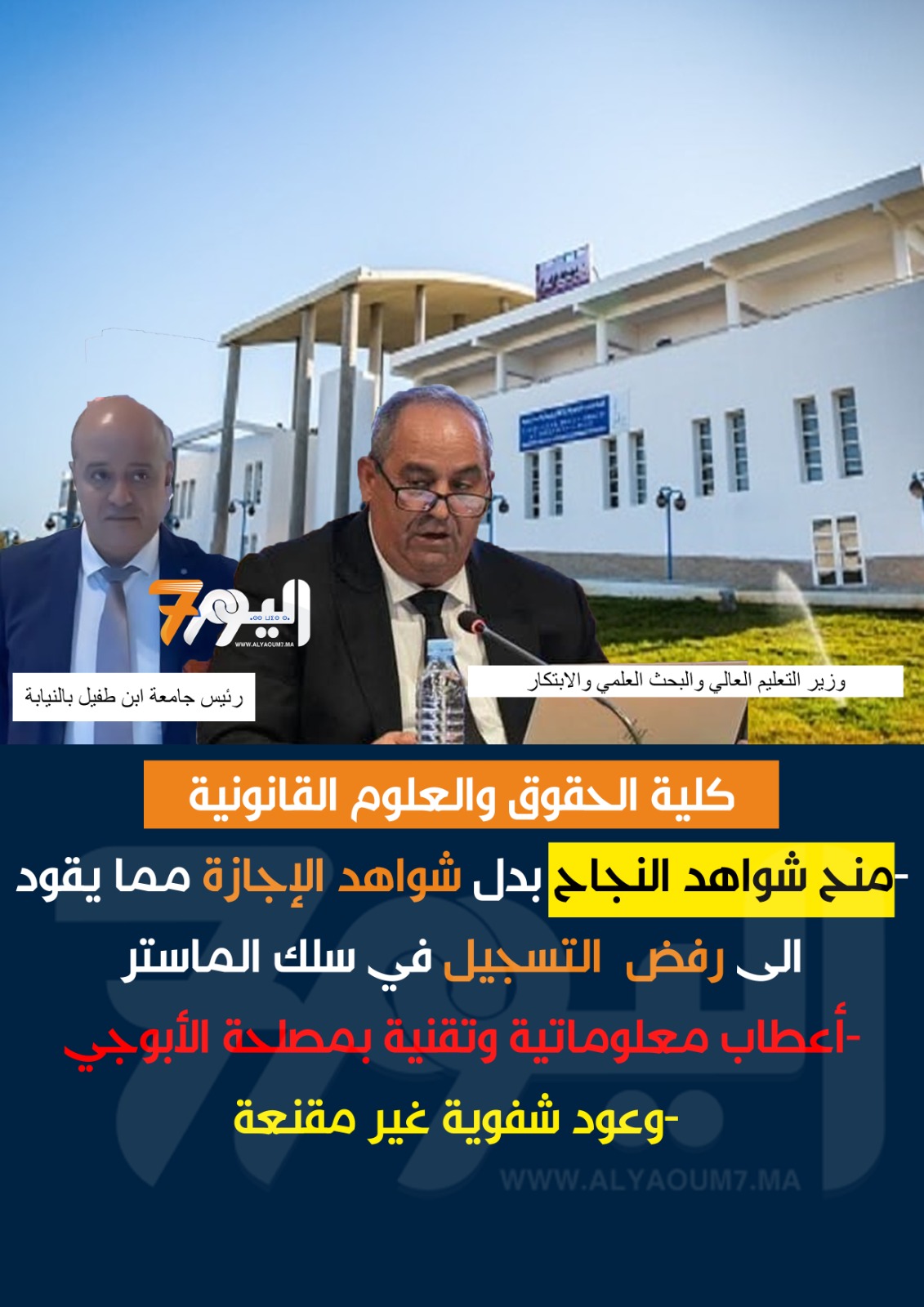 القنيطرة :حرمان طلبة بجامعة ابن طفيل (كلية الحقوق و العلوم القانونية )من الحصول على شهادة الاجازة رغم حصولهم على شهادة النجاح برسم موسم 2024-2025