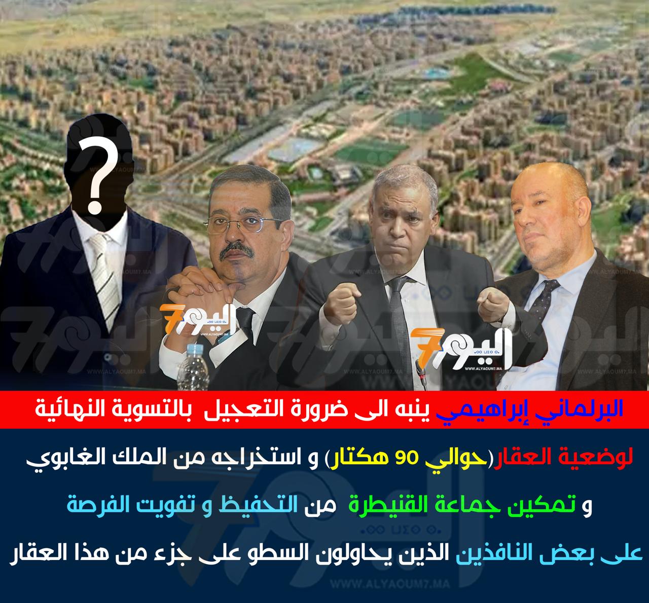 ابراهيمي،البرلماني عن دائرة القنيطرة يدعو الى التسوية النهائية للعقار(حوالي 90 هكتار) و استخراجه من الملك الغابوي و تمكين الجماعة من التحفيظ،لتفويت الفرصة على بعض” النافذين ”الذين يحاولون السطو على جزء من هذا العقار