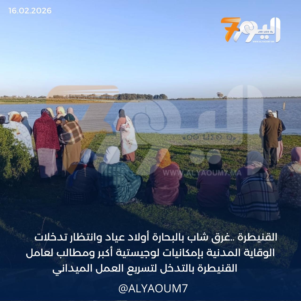 في حادث مقلق،غرق شاب يبلغ من” العمر 17سنة ”زوال اليوم الاثنين 16فبراير الجاري وسط مرجة كبيرة وعميقةلتجمع المياه من مخلفات الفيضانات والأمطار القوية .بقيادة البحارة أولاد عياد ضواحي القنيطرة.