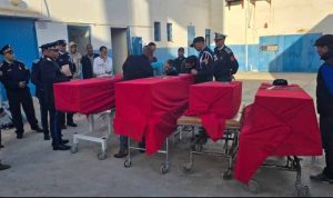 جرت صباح اليوم مراسيم نقل جثامين موظفي الأمن الأربعة شهداء الواجب الوطني/ضحايا الحادث الأليم الذي وقع ضواحي سيدي إفني، من مستودع الأموات بالمستشفى الإقليمي بسيدي إفني، إلى مدن عائلاتهم بكل من مراكش وقلعة السراغنة والفقيه بن صالح لتوارى الثرى.