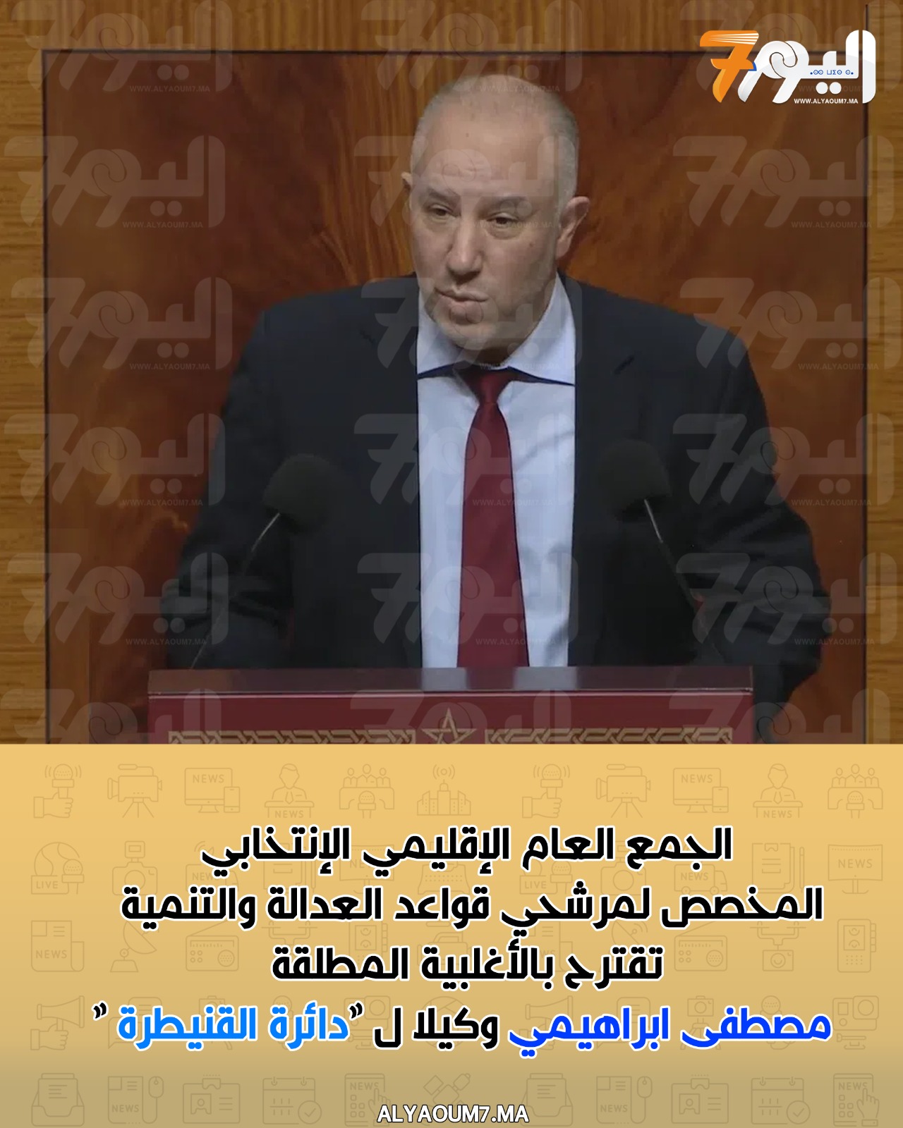 حملت نتائج اجتماع الكتابة الإقليمية لـ حزب العدالة والتنمية بإقليم القنيطرة، صباح يومه الأحد 05 أبريل 2026 ، بمقر غرفة التجارة والصناعة والخدمات، خلال الجمع العام الإقليمي المخصص لانتخاب مرشحي الحزب للاستحقاقات التشريعية.