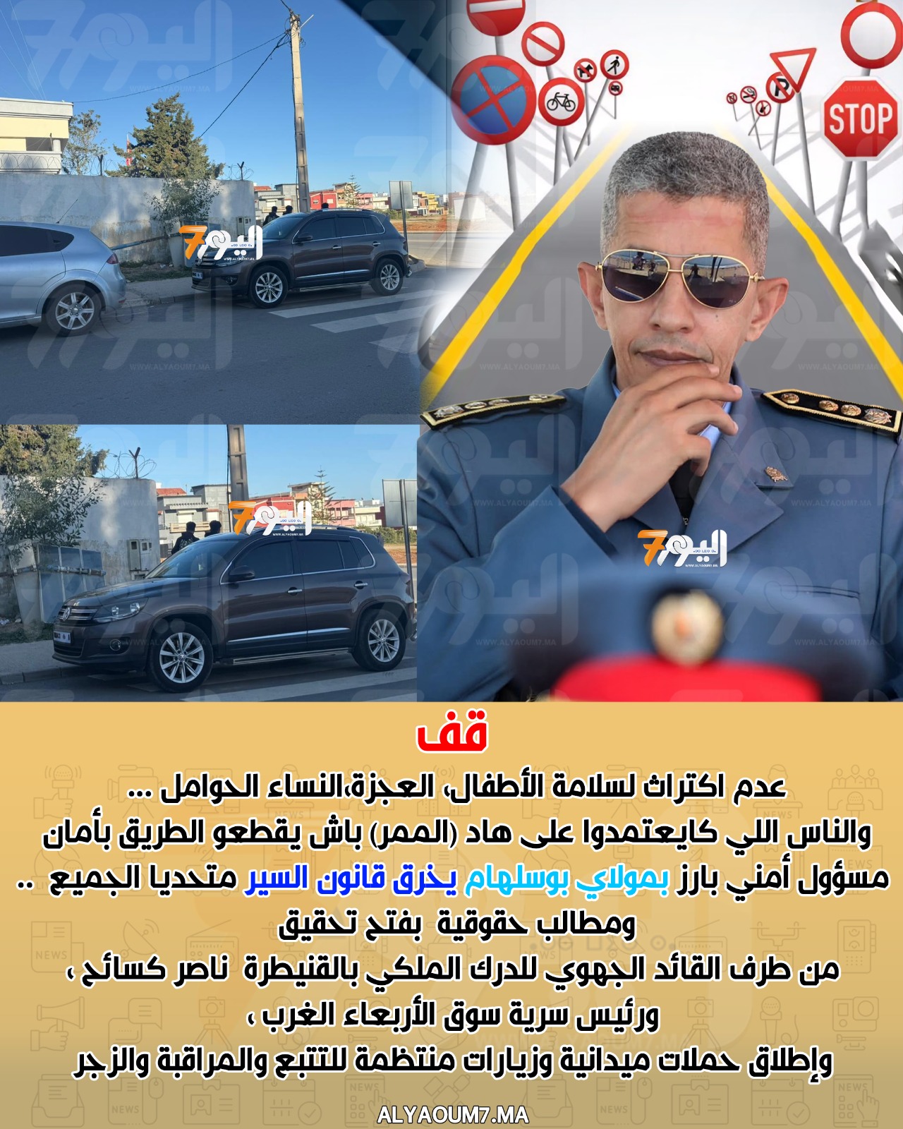 القنيطرة : الاستهتار في تجليات غير مبررة ولا مقبولة .. مسؤول دركي ” يتَحَدَّى “قانون السير بمولاي بوسلهام،وفعاليات : لنا الثقة في تدخل الإدارة المركزية