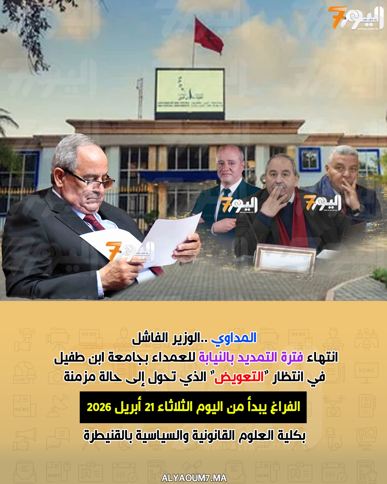 من المؤسف أن يصل بنا الحال..الى أن يستمر “وضع الفراغ”الإداري بعدد من كليات ومدارس جامعة ابن طفيل ..اثر انتهاء فترة التمديد بالنيابة للعمداء بالجامعة يوم الاثنين20 أبريل 2026 .