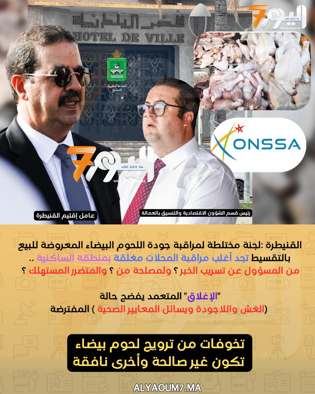 فضيحة بالقنيطرة …عشرات محلات بيع اللحوم البيضاء” تغلق” أبوابها بالساكنية بعد علمها بحلول لجان المراقبة ومطالب للعامل بفتح تحقيق حول الواقعة وترتيب القرارات المناسبة واستمرارية الرصد والزجر