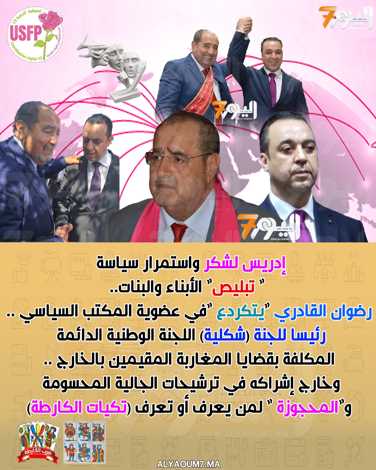 تزكيات لمن يعرف أو تعرف “يتيك الكارطة”..رضوان القادري،منسق تنسيقية الجهة 13 خارج المكتب السياسي،رئيسا لـ “لجنة شكلية” ،وخارج صناعة الرأي والقرار في “الترشيحات النسائية” لـ مقعد “مغاربة العالم”