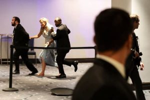 وأوضحت شبكة “سي بي أس” أنه تم إخراج الرئيس ترامب وكبار الشخصيات على عجل من عشاء رابطة مراسلي البيت الأبيض خلال” إطلاق الرصاص “.وسط استنفار أمني كبير .