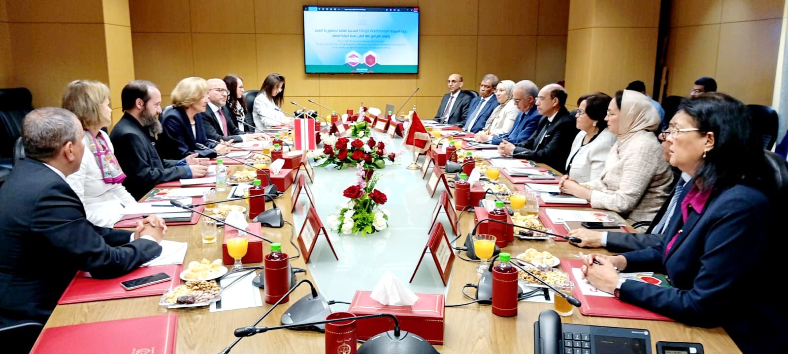 أجرى الوكيل العام للملك لدى محكمة النقض، رئيس النيابة العامــــة، هشام البلاوي، صباح اليوم الإثنين 27 أبريل 2026، بمقر رئاسة النيابة العامة بالرباط، مباحثات مع الوكيلة العامة بجمهورية النمسا، “مارغريت فاخبيرغر”، التي تقوم بزيارة عمل لبلادنا رفقة وفد رفيع المستوى، في إطار تعزيز علاقات التعاون بين مؤسستي النيابة العامة بكل من المملكة المغربية وجمهورية النمسا.