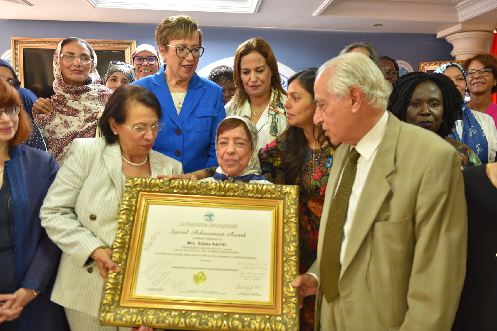 شارك في هذا التكريم الذي نظمته المؤسسة الدبلوماسية، العديد من الشخصيات بما في ذلك سفراء من غامبيا وماليزيا وصربيا وجمهورية الدومينيكان وأستراليا ، عن كل من القارات الخمس ، وكذلك المدير الإقليمي ممثل اليونسكو في بلاد المغرب الكبير للمنظمات الدولية ، ووقعت الشهادة التي تحمل عنوان “جائزة الإنجاز الخاص” تقديراً لمسيرة السيدة رفيقي النضالية.