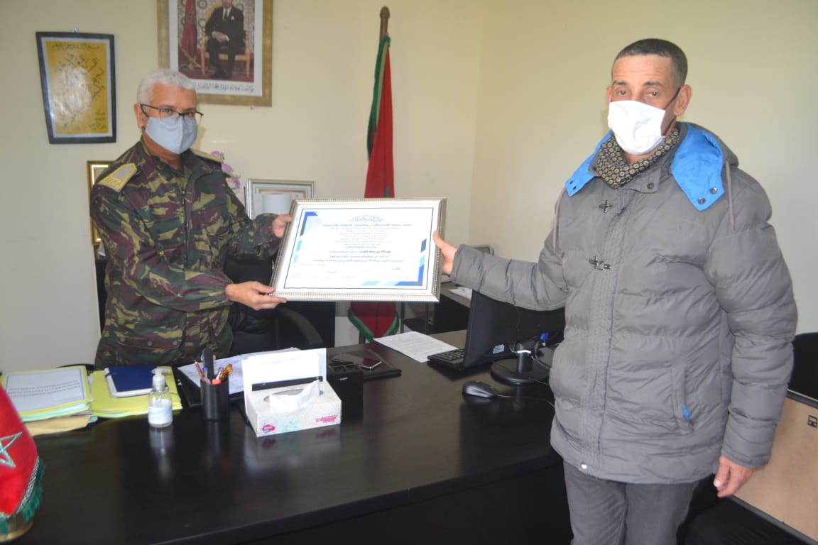 وخص التكريم ، وتقديم شهادة تقدير وعرفان الى كل من :رئيس الدائرة وقائد قيادة للاميمونة وقائد المركز الترابي للدرك الملكي بذات الجماعة،وعدد محدود من ممثلي المجتمع المدني الفاعل بالمنطقة في احترام تام للتعليمات الصحية والشروط الاحترازية المطلوبة.